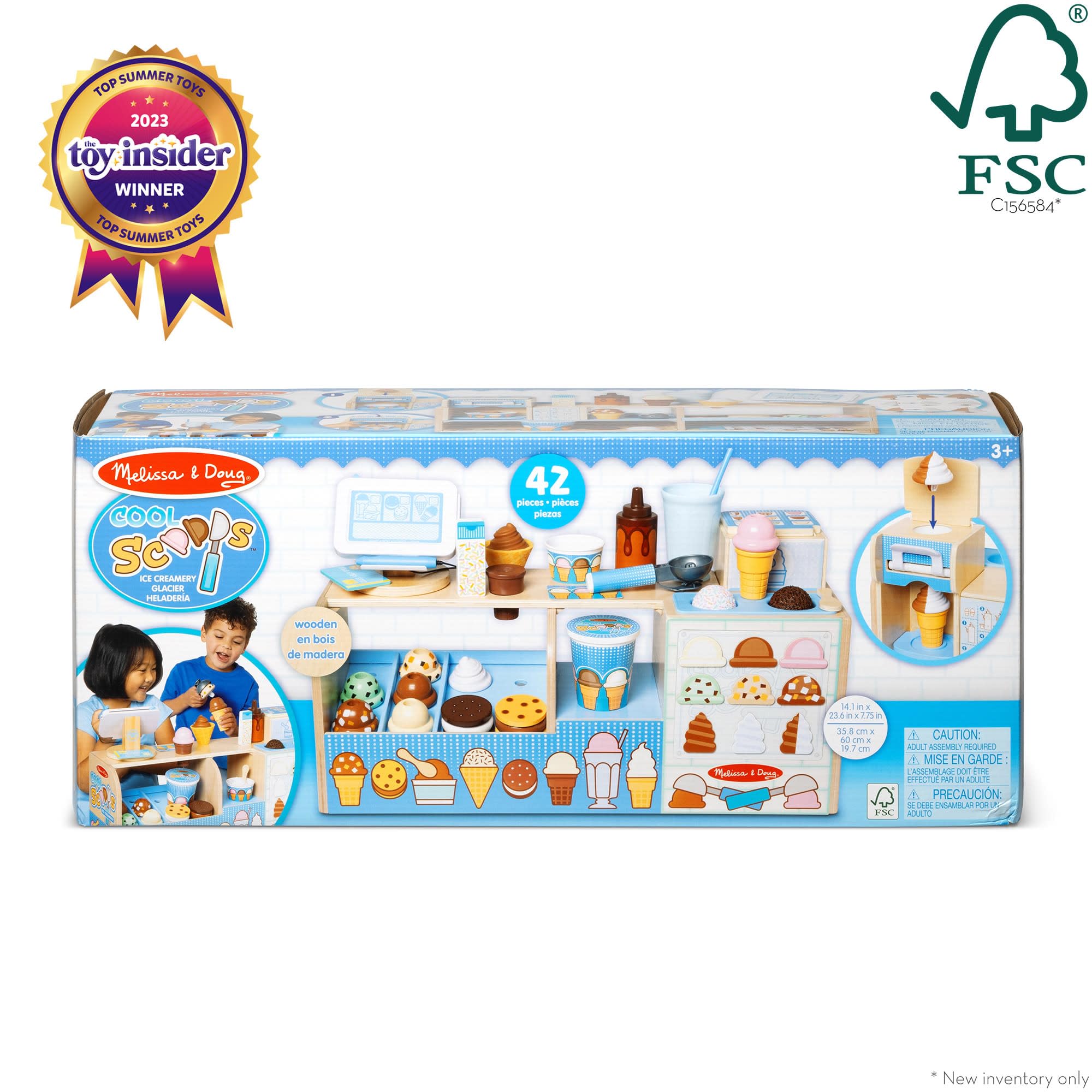 Melissa & Doug Cool Scoops Ice Creamery, Wooden Ice Cream Shop & Counter with Play Food & Play Kitchen Accessories, Preschool Learning Toys for Girls & Boys 3+ - FSC Certified
