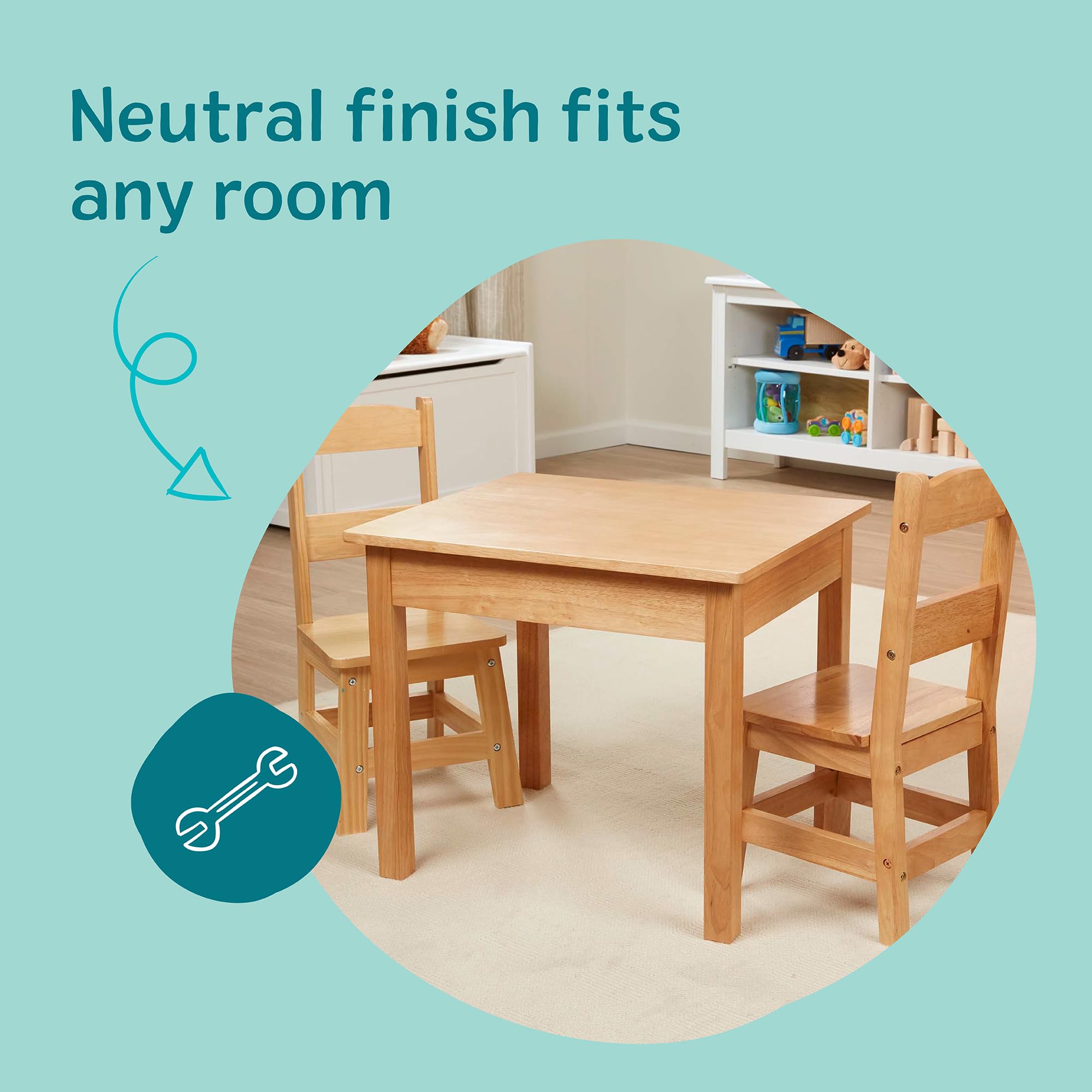 Melissa & Doug Solid Wood Kids Table and Chairs (2), Premium Quality Wooden Toddler Table and Chair Set for Kids Playroom Furniture & Montessori Classroom Furniture for Boys & Girls Ages 3+